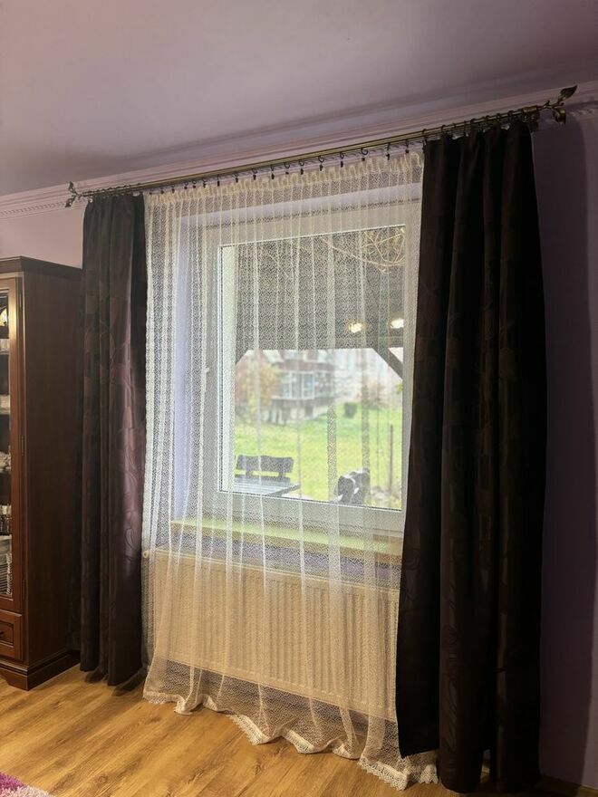Zestaw brązowych zasłon z firanami